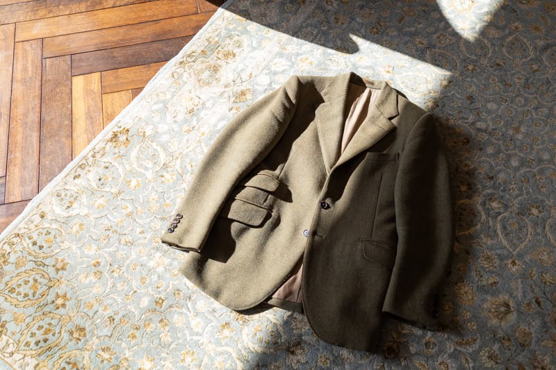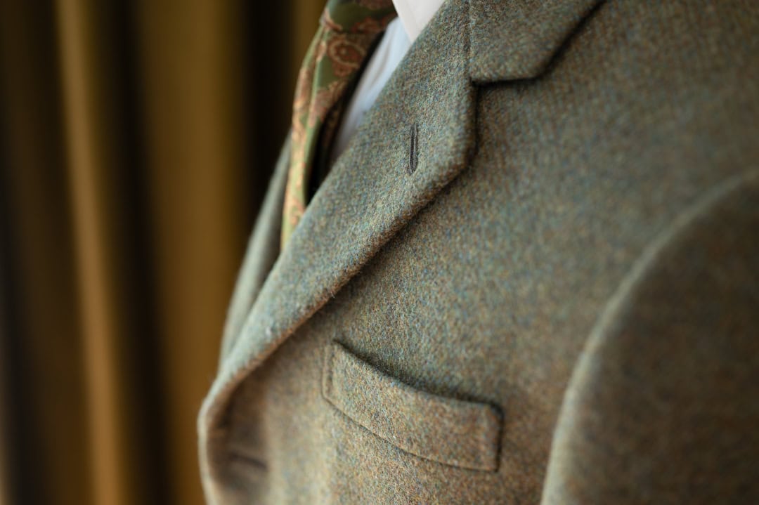 靴や鞄などに代表される英国製の革製品の魅力は、使い込むほどに味わいを増し、メンテナンスを繰り返しながら長く使うことで愛着が深まっていくことです。まさに今の時代に相応しいサステナブルな製品と言えるわけですが、「ラヴァット・ミル」のツイードにも全くもって同じことが言えるのです。スタッフ愛用の「ラヴァット・ミル」で仕立てたツイードジャケットは12年目を迎えました。国内のみならず渡航先のロンドンをはじめ色々な国と環境でハードに着用してきたジャケットは味わい深く経年変化しております。使い倒す勢いで着用してきたため裏地が裂けたことも一度ではありません。その都度メンテナンスを行うことでスタッフ自身のアイデンティティと呼べるまで育ったツイードジャケットを見て、率直に同じものが欲しいと思われたお客様がいらっしゃいます。そして、即断で同じ生地でご注文をいただきました。この真新しいツイードジャケットがこれからどう育つのかお客様と一緒に楽しみたいと思います。